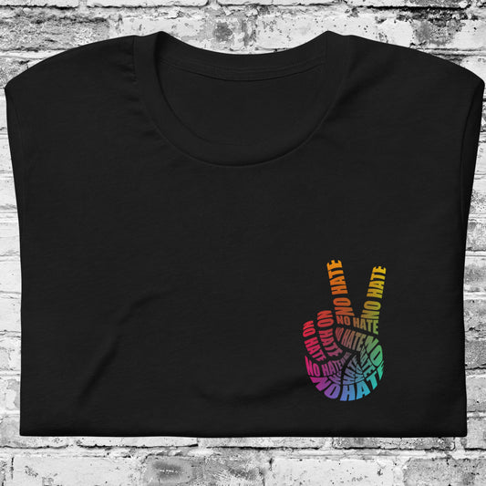 No Hate Peace Sign Shirt | Rainbow Anti-Hate Graphic Tee | Unisex T-Shirt, Hoodie, Onesie, Kids Tee, Hats & Mugs